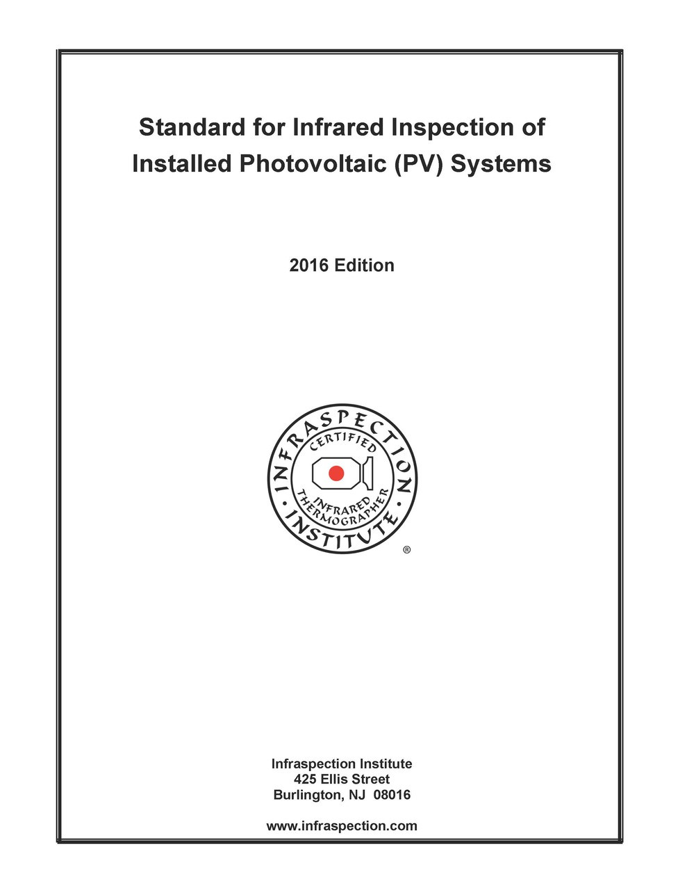 - Standard for IR Inspection of Installed Photovoltaic (PV) Systems - 2016 Edition